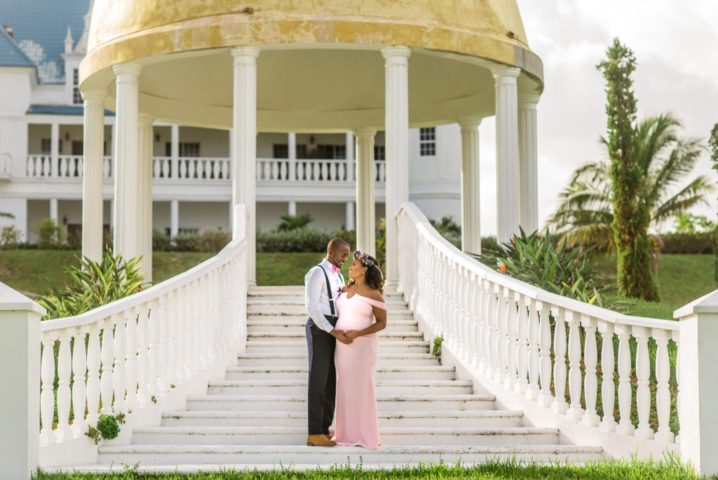 I’ve always loved Cooper’s Castle in Grand Bahama. The architecture set the tone for a photoshoot worthy of my princess while adding elements of glamour and magic. Freeport is known as the Magic City and because I grew up there, I wanted my baby and this experience to have a connection to home. The castle is white, trimmed with blue and is set on gorgeous grounds that would allow us to take shots in different places all with an air of whimsy. The architecture was perfect for what I wanted but the mood the photos would elicit might have another feel if the subjects of the photo weren’t dressed for the landscape. Here is where A number 2 in “Acing Your Maternity Photoshoot” comes in: ATTIRE.