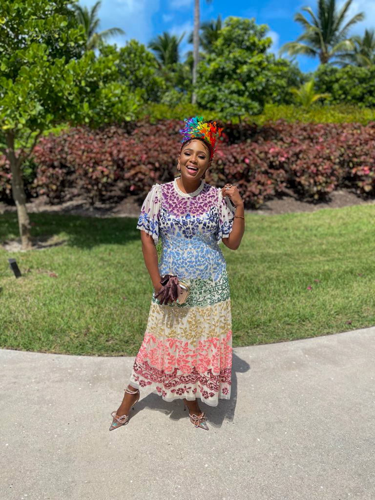 I’ve wanted to work with David Rolle of Raphelita since I wore a headpiece he designed for the Bahamas Junkanoo Carnival several years ago. He’s also the young visionary keeping Bahamian luxury brand Harl Taylor Bag front and center. I love this look he did and the bag he designed for the wife of the Prime Minister, Ann Davis.