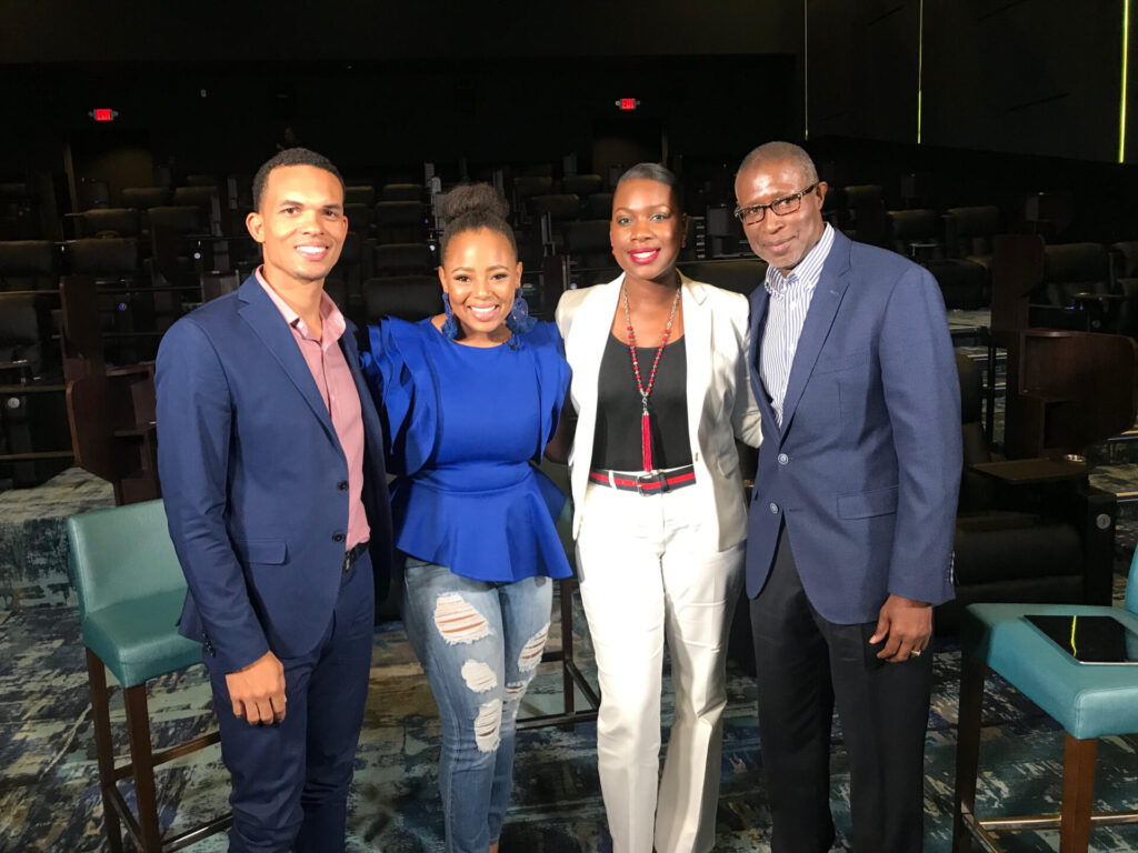 I wanted to wear something fun that fit the environment of this new entertainment experience while keeping it classy and professional enough for morning TV. I knew I would be interviewing corporate leaders and CEOs and I was pretty sure they would wear suits (see picture below to note that I was right) so I also bore that in mind.